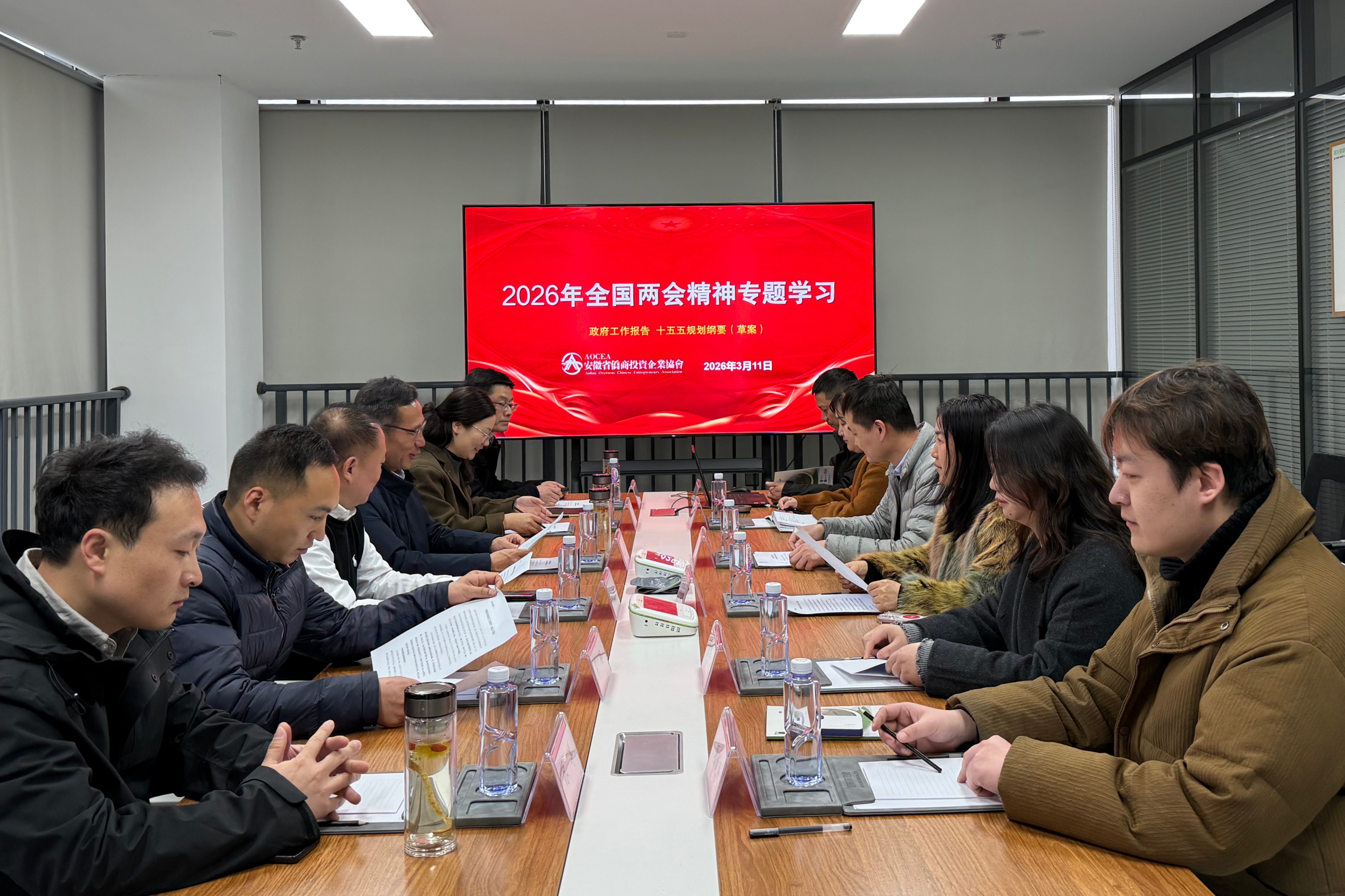 春回万物生,聚力启新程。为学习宣传贯彻好2026年全国两会精神,进一步统一思想、凝聚共识、明确方向,3月11日,安徽省侨商投资企业协会召开专题会议,集中学习全国两会精神,协会领导班子主要成员、支部党员、秘书处人员和会企代表等参加学习。