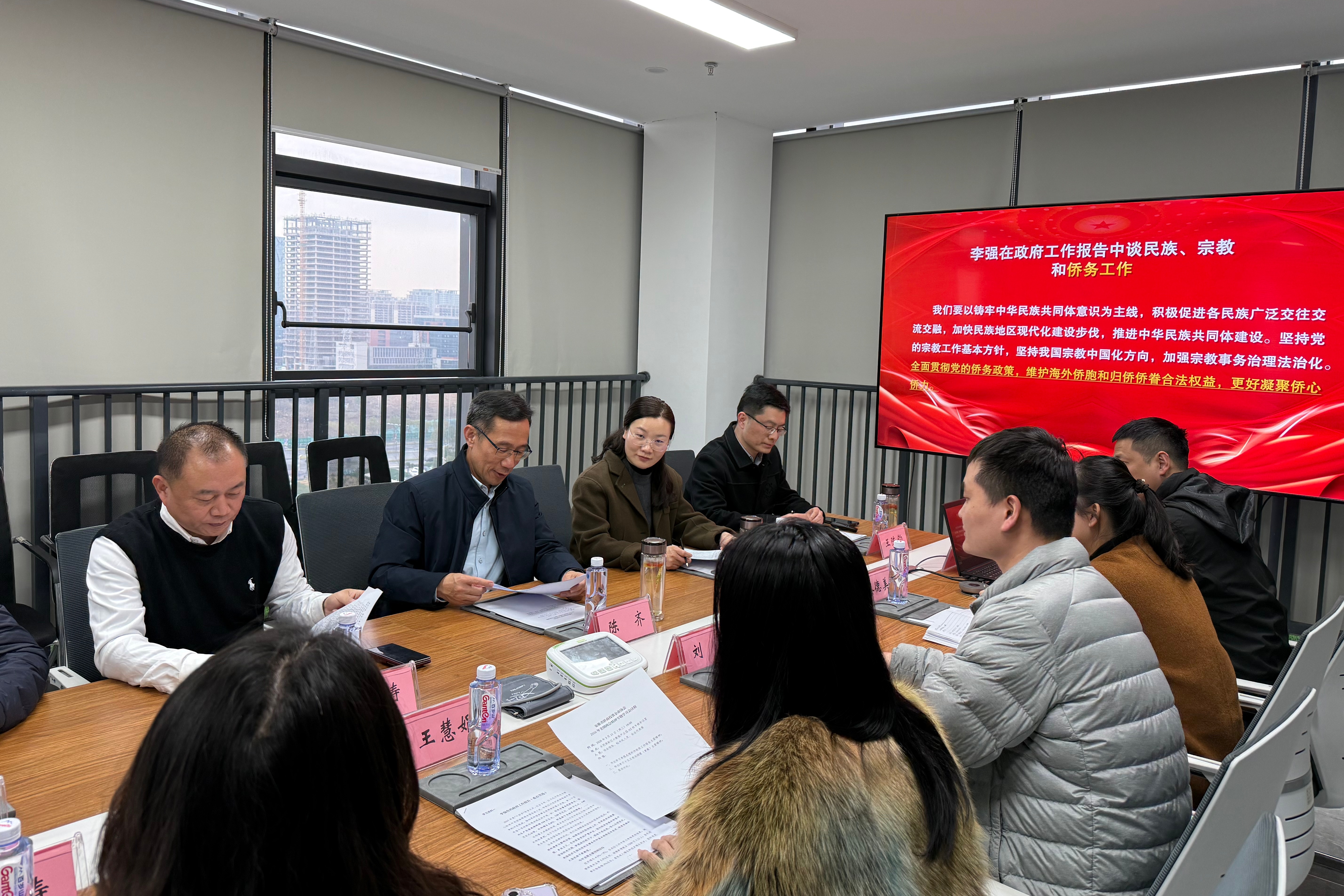 会议介绍了十四届全国人大四次会议和全国政协十四届四次会议基本情况,传达学习了习近平总书记两会期间重要讲话精神和政府工作报告、十五五规划纲要(草案)摘要内容,重点学习涉及侨务工作和民营经济、民营企业发展的相关内容,与会人员还结合协会建设和侨企发展开展座谈讨论,畅谈学习体会。